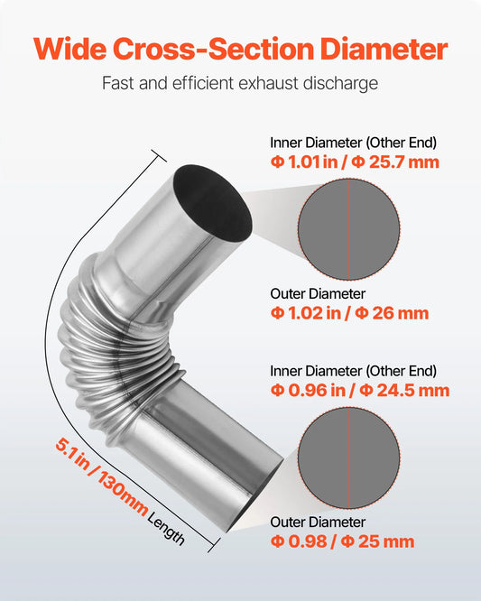 Avgasslang 3000 mm i rostfritt stål för dieselvärmare