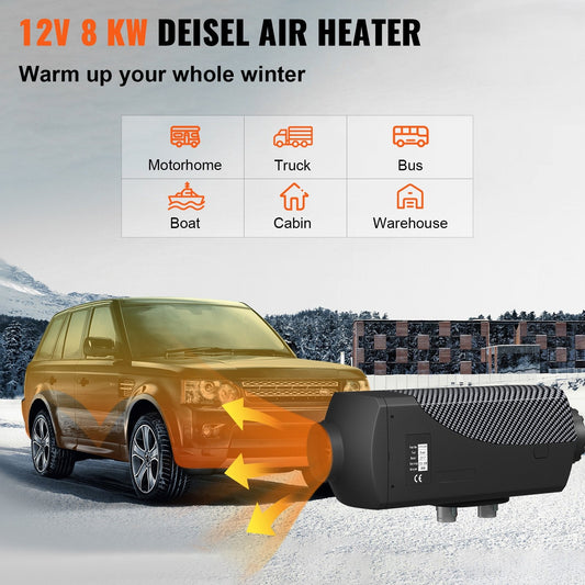 Dieselluftvärmare 8KW, 12V PAKET allt-i-ett LCD-skärm + Fjärrkontroll