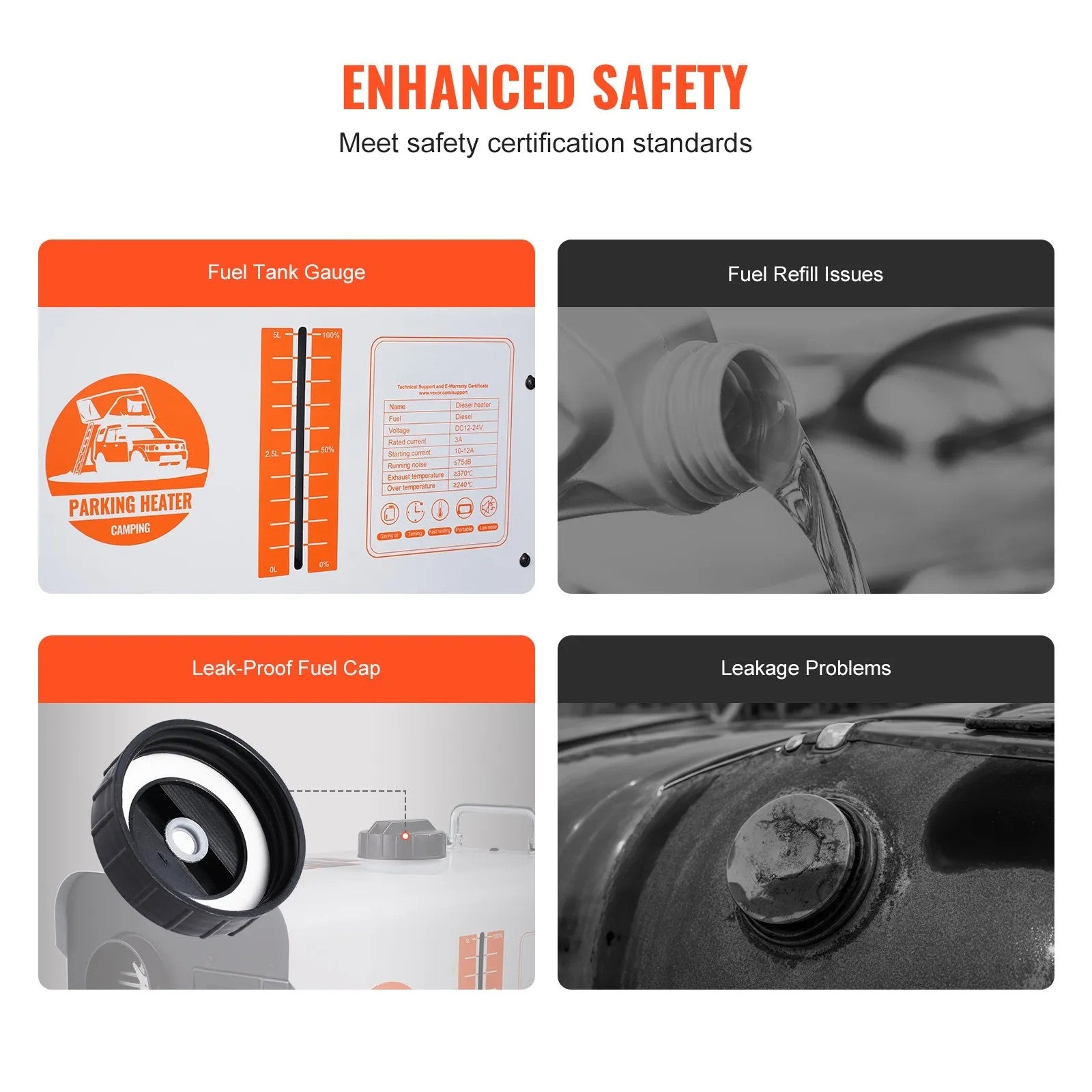 En integrerad ljuddämpare och bränslepump minskar bullernivån till ≤75 dB, vilket gör att värmaren kan användas utan att störa sömn eller arbete. Den bärbara designen med handtag gör den enkel att flytta mellan olika användningsområden.